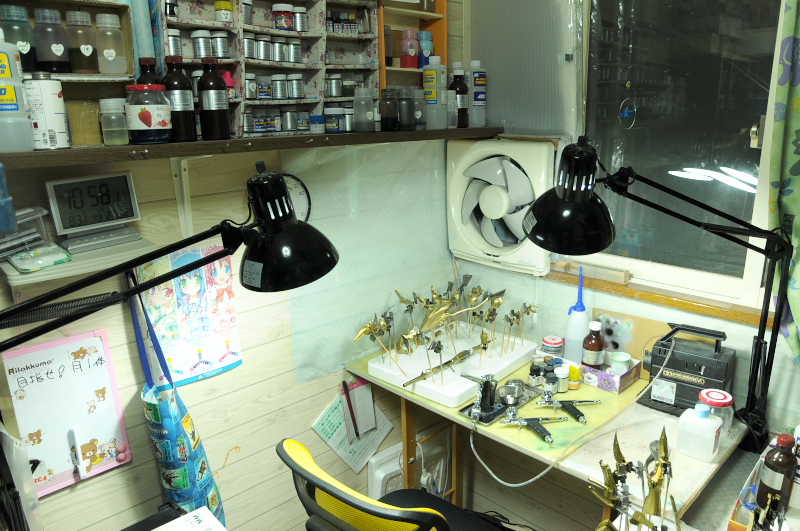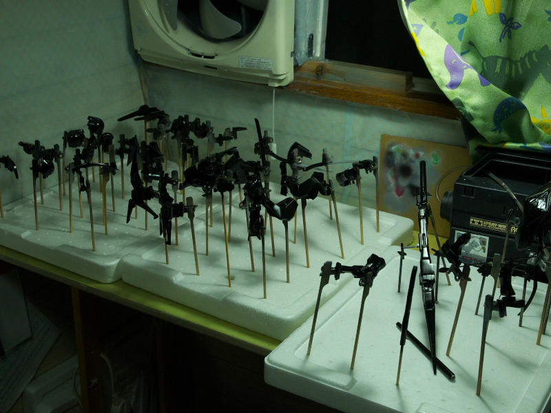 コッペパンのようになった腕を見ながら夏を満喫しているkotatuです。 ナイトオブゴールドも金色の塗装が終わりました。 5回目の重ね塗りで落ち着いたいい感じの色になりました。 これならクリアーイエロー使わなくても良さそうです。 今は関節やフレーム部分をエナメル塗料で塗り分けています。 作業場(3畳の書斎の一角)はこんな感じです・・・ バック一杯の水筒とお弁当を持って、子供の体育祭を応援してきました。