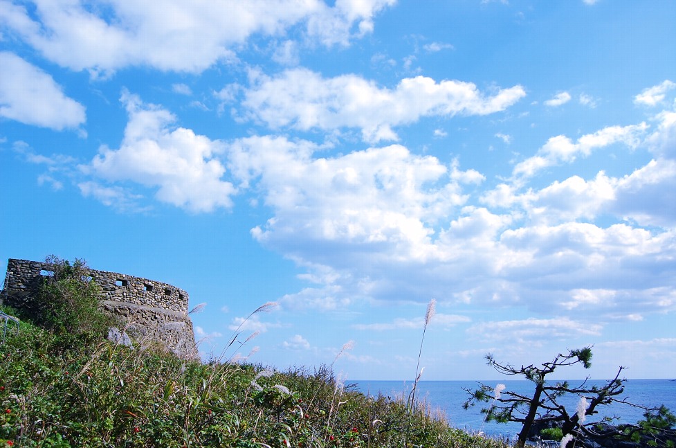ラジコンやガンプラ、写真も楽しいのですが、一日24時間のうち半分以上を費やしている仕事こそアクティブに楽しみたいものです。 ふっふっふ、単なる雇われサラリーマンで終わるつもりはないゼ! それはさておき、だいぶ秋らしくなってきて、気持ち良く見れるのもそろそろ最後だろうと海まで出かけて来ました。行き先は八戸の景勝地の一つ、葦毛崎(あしげざき)。 リアス式の海岸にせり出した展望台からは180度以上の水平線が楽しめます。