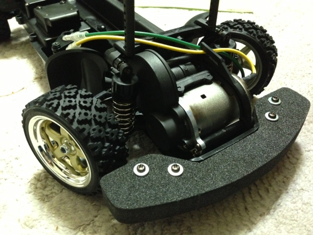 「食べ物よりも自分の体が勿体無いと思いなさい」←名言 通勤途中、下りっ腹を抱えて歩く会社まで道のりはかなり冷や汗物です(汗)。 さて、RM-01はボディの基本塗装が終わりました。(白く塗っただけですが) まだデカールとか貼っていませんが こうなると・・・ 走らせてみたくてウズウズ。 我慢できず、夜中に家の前の駐車場で走行させました。 セッティングは全て標準。 タイヤも削っていないので、車高8ミリ(笑)。 フロント周りだけ、ちょっとソフトになるように小細工しています。 ドキドキしながらスイッチオン。 スロットルトリガーを引くか引かないかのうちにスルスルっと前に出ます。 ステアリングに対してもクィックにレスポンス良く反応してくれます。 オーバルと8の字で様子を見ますが、とにかく動きが軽い! 気になっていたアンダーも全く出ません。 曲がる度に、シャーシがもっと早くスロットル開けろ~と言ってきます(喜)。 動きに慣れた所で、直線で全開。 DD特有の後半で伸びる気持ち良い加速!う~ん最高~!!2サイクルの単車みたい。 380モーターとLF6.6Vでもかなり速く感じます。 380Sモーターになったら扱えるんだろーか・・・。 立ち上がりでちょっと巻き気味だったので今度はセッティング弄りたいと思います。 ・・・楽しすぎる夏到来の予感。 日曜日は自慢の4WDでオフロードをカッ飛んでいました。