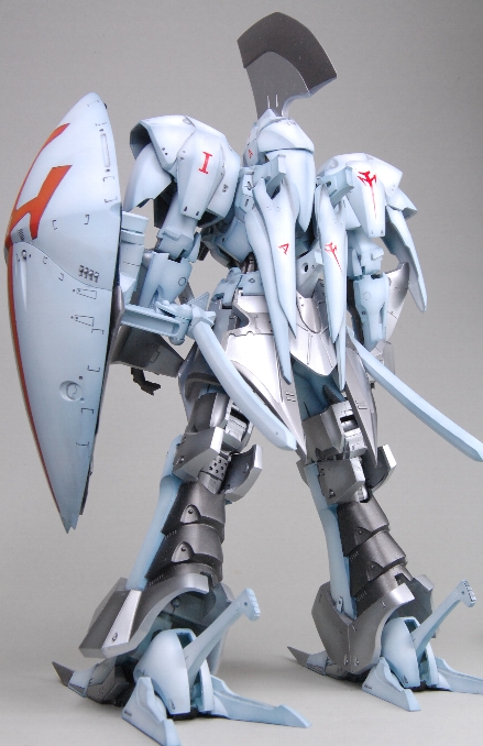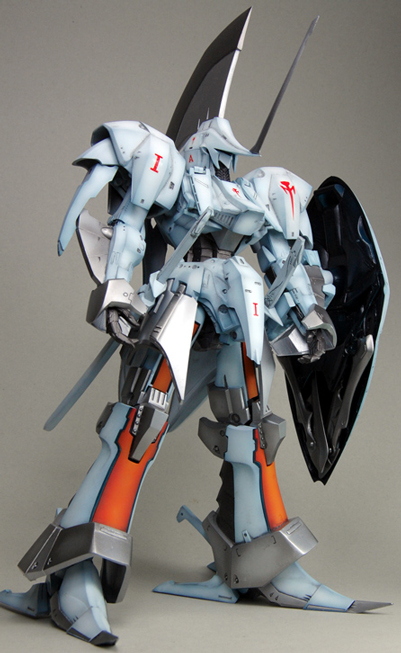 2月に頼まれて、一日1、2時間ずつの作業でようやっと今完成です。 至れりつくせりのガンプラと違い、製作者に挑むかのようなキットは非常に挑戦しがいがあり、おかげでとっても勉強になりました。もうどんなマスキングでも怖くないです・・・(汗)。 正面から。 うぉぉ!このトンがった感じがなんとも言えません。 製作工程ですが、 ・ゲート処理・合わせ目消し、甘い筋彫りを彫り直し。 ・#600→#800→#1000のヤスリで下地仕上げ。 ・洗浄、乾燥。 ・サーフェイサー吹き、ヒケ及びキズチェック、パテ埋め修正。 ・再びヤスリがけとサーフェイサー吹き。 ・陰色となるベースグレーを塗装、パーツの端部や奥まった所はその陰を残しながら3~5色で段階的に暗い色から明るい色にグラデーション塗装。(写真ではあまり分かりませんが・・・。) ・スミ入れ、軽いウォッシング、デカール貼り。 ・つや消しトップコート吹き。 ってな感じで作りました。 レッドミラージュは後ろもカッコいい! 腰の装甲は指定では銀一色なのですが、端部を濃い目の色で塗り分けてそれらしくしてみました。 このキットは細かいモールドが多く、スミ入れをするとぐぐぐ~っとリアル感が増します。(スミ入れしてて楽しかった~!) やべぇ、また作りたくなってきた・・・。 ラジラーの皆様コンバンワです!