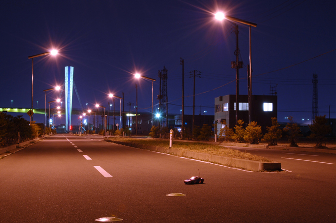まだまだ寒い日が続いて思うようにラジれず悶々としております・・・ でも我慢できず、ちょっとポート@闇練サーキット行ってしまいました(汗)。 今年のお題はずばり、”ブレーキング”です。 どんな速度域からも自在に減速し、思ったとおりのラインにクルマを乗せる。そんなテクニックを目指して鍛錬です。 使っているクルマはM-04Mなのですが、ハンドリングが面白い反面、クィックなセットにするとリアのグリップ確保が難しく、非常にシビアになってしまいます。なので、クルマ側は敢えてアンダーステアにセットし、それをドライビングで曲げるようにしたいと思います。そのために、やっぱり必要なのは自在なブレーキングなのです。 目標があると俄然やる気が出ます! ポート@闇練サーキットは道路です。が、撮影している後ろは海で行き止まりで、車が来る事はまずありません。照明は写真ほど明るくありません(カメラの感度を上げて撮影してます)が、ミニクラスの速度なら十分追いかけられる明るさです。 コンバンワ、たった一缶のビールでとっても幸せになれてしまう安上がりなkotatuです。プラモが完成したので一人祝いで飲んでましたー!