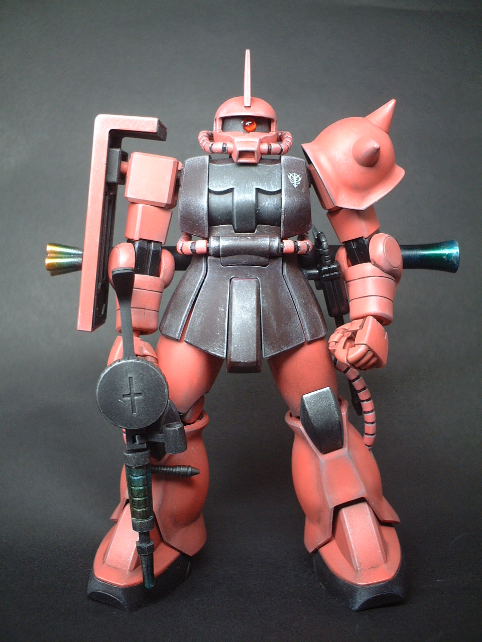 そんな時は、やっぱりガンプラ。 箱積みモデラーにならないためにも、一度箱を開けたら、最後まで作ってから次に取り掛からなければなりません。 ラジコンもプラモも、上達するにはやはり数をこなすのが一番。いつかはネット上で見られるようなすばらしいガンプラを作る事を目指してガンバルのであります! で、大好きなズゴックE(ワタシはジオン派!)もなんとか完成。 次はMGシャアザク行きま~す! ジオン系MSはモノアイが命!HGシリーズではシールや簡単なクリアパーツで再現されていますが、あまりカッコよくないので、ラジコン用の真鍮フランジパイプと使わなくなったミニッツのボディから外したテールランプでそれらしくしてみました。 コンバンワ!レースリザルト打ちながら飲む酒最高!なkotatuです。