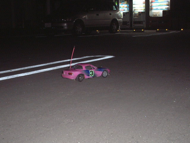 プロポの持ちすぎで腕が筋肉痛のkotatuです。(汗) 昨日は”闇練専用サーキットその1ポートの橋を渡って真っ直ぐ直進突き当たりの広場”で走らせてました。ここは夜でも照明が明るいのでお気に入りの場所です。 時間が無かったのでセットはそのままでしたが、グリップが良いせいか、普通に走れます。 しかし狭いレイアウトなせいもあり、リアタイヤが何度もパイロンタッチ。 今のセットのTA-05は良く曲がるクルマなのですが、コーナーの後半でグワッと内側に曲がるようなクセがあります。 結果、鋭角的なラインになってしまい、コーナーとコーナーを最短距離で綺麗に繋ぐラインが取りにくい感じです。 ステアリングワークの戻しを上手く出来れば操縦者側でなんとかなる感じですが、もう少し楽に走れるようにする必要があるようです。 いや~、でも。 ラジコンってやっぱり面白い。 どうしても上手く回れないコーナーがあって、どうしたものかと考え、反対側に立って走るとすんなりクリアできてラインの悪い所が判ったり、パワーの無い電池の方がタイムが良かったりと、毎回新しい発見があって楽しいです。 その割にたいした事ないだろって話はナシの方向で。 コンバンハ、kotatuです。 結局今日は仕事が終わったのが遅く、更に別の用事もあって、自由になったのは夜遅く。 それでも新しいセットを試すのはとても楽しみなもので、闇練習専用サーキット家の近くの某駐車場その2へ。ちなみにその4まであります。 とりあえず路面の埃飛ばしにM-04Mで少し走行した後、いよいよTA-05で走りこみます。 セッティングとしては、これまでのハイパワーモーター・ハイグリップタイヤ用の固めセットから、車高高めで柔らかなロール重視のメカニカルグリップ重視のセットに変えてあります。ボディは暫定的にNSX。 ところが。 甘く見ていたタミグラ指定タイヤは思った以上のグリップを見せ、タイトなコーナーではシャーシが路面を擦ります。とりあえず1mmのアウタースペーサーを噛ませて車高を上げます。幸いハンドリングは悪くありません。多少フロントが突っ張った感じですが、リバウンドを見直せばなんとかなりそうな感触。ワンウェイ仕様だともう少し鋭いコーナーリングが出来る気もしますが、スロットルをなるべく戻さず、かつフロントの荷重が逃げないような指使いを心がければそれなりに曲がってくれます。 むしろ接戦の多いタミグラではこれくらいが良いかも。 ってな感じで1パックを使って久々のツーリングの動きに指を慣らします。 モーターはGTチューンですが、扱い易くかつ思いのほかパワフルで、楽しむには絶妙のチューンだと思いました。 このモーター・タイヤの組み合わせでワンメイクだと、かなり楽しめそうで期待大です。 こんにちは!kotatuです。