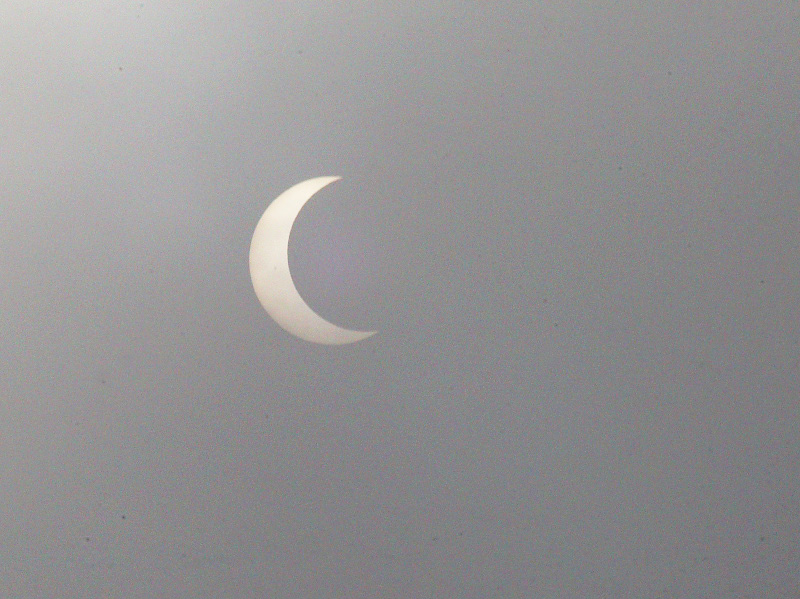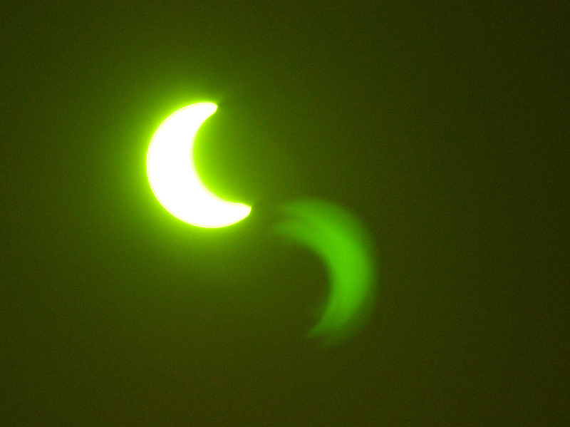 天体ショーの日は決まって天候に恵まれないのが常なのですが・・・ 今回はばっちり晴れとの事、太陽グラスとカメラを片手に出勤♪ コーヒーをいれながら見上げると、大分欠けてきていましたヨ。 太陽グラスをカメラに着けての撮影なので、色が変&反転ゴーストが出ていますが、 これはこれで雰囲気。 よっしゃぁ~この調子で・・・と思っていたら、突然霧が流れてきて、 太陽は全く見えなくなってしまいました・・・ おーまいがーっ!! しばらく見上げていても霧が晴れる様子は全く無く・・・ こりゃあダメだね、と諦めかけた時。 今日は仕事中に時間をもらい、地元小学校の運動会に行ってきました。